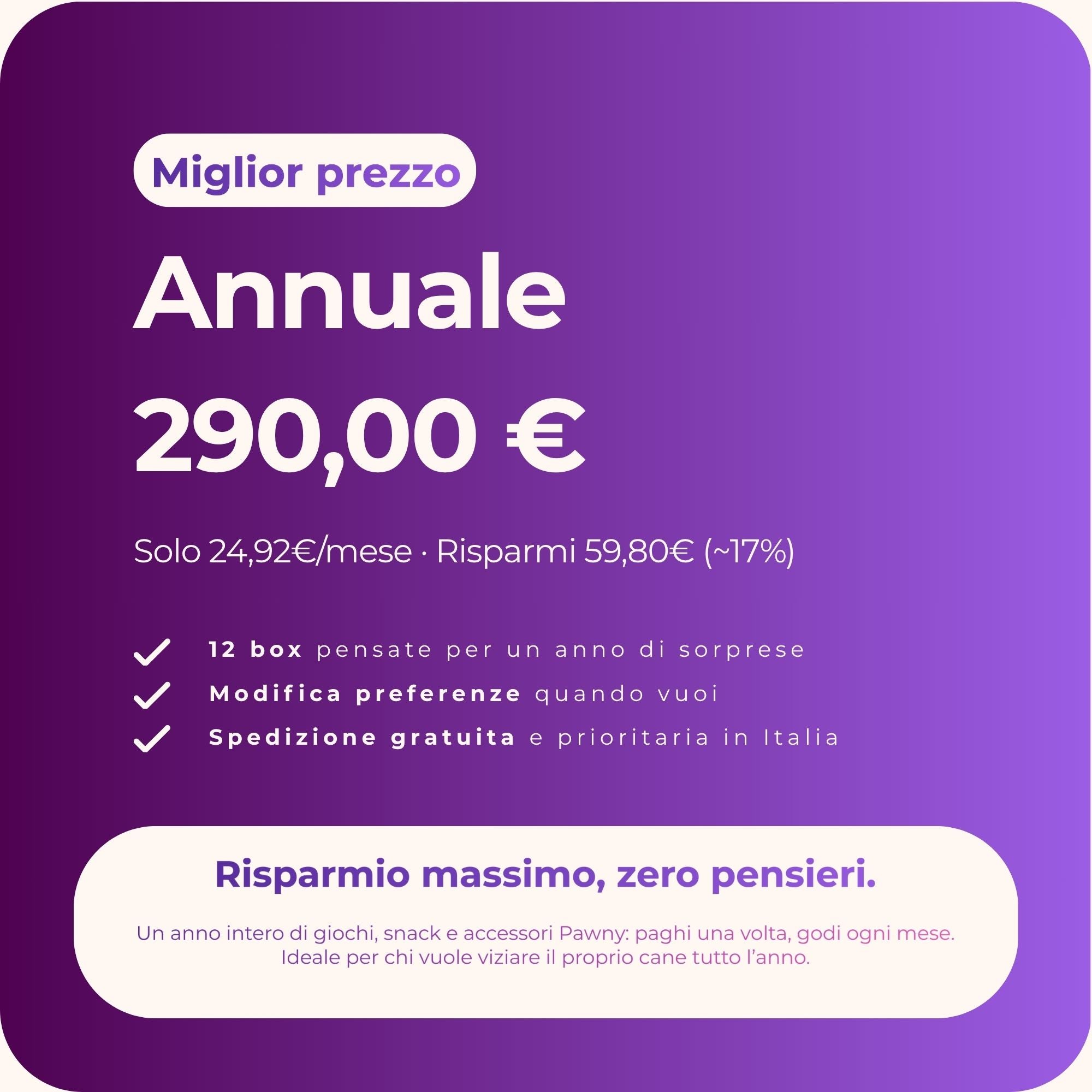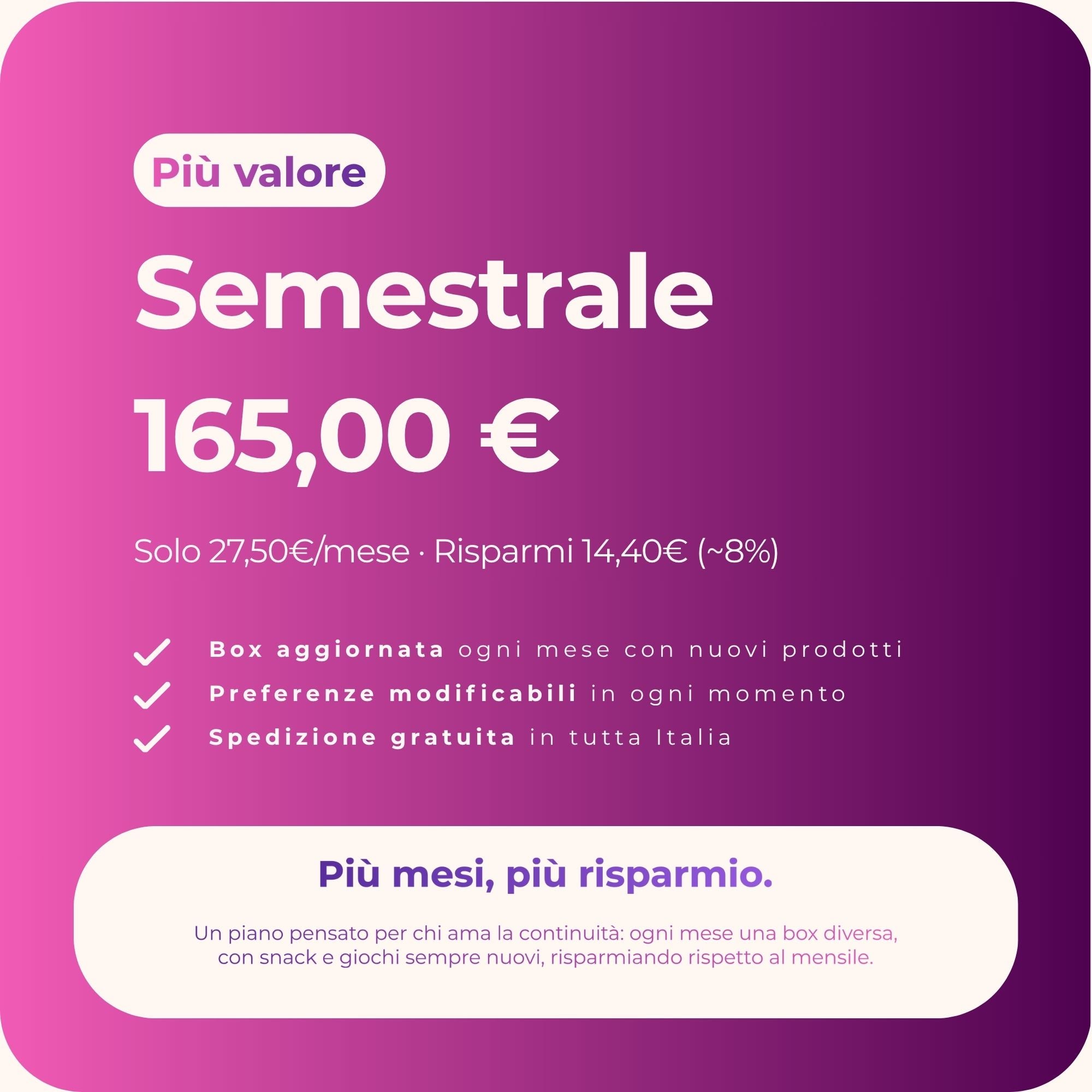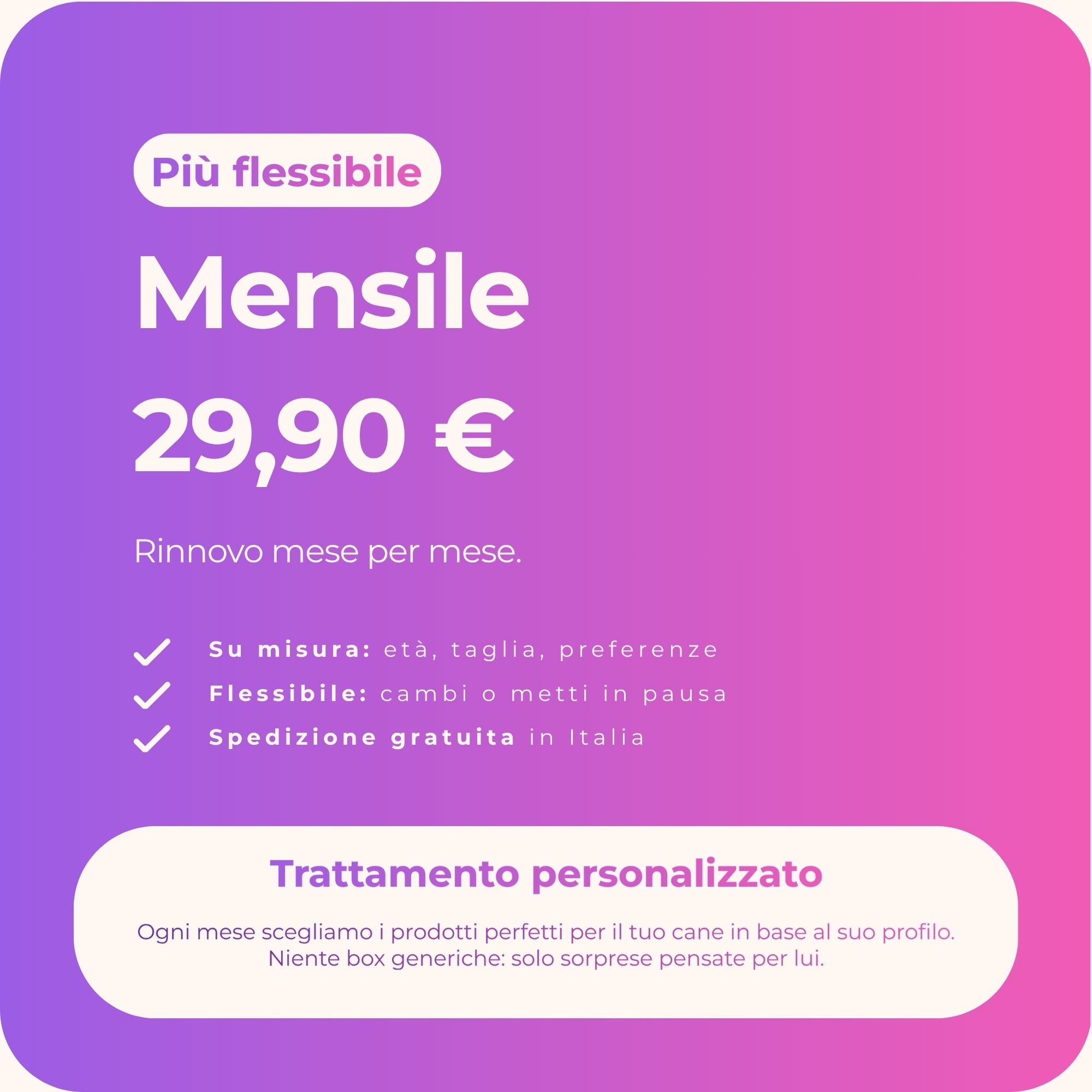 Mensile / semestrale / annuale. Puoi saltare un mese, mettere in pausa o cancellare quando vuoi. -