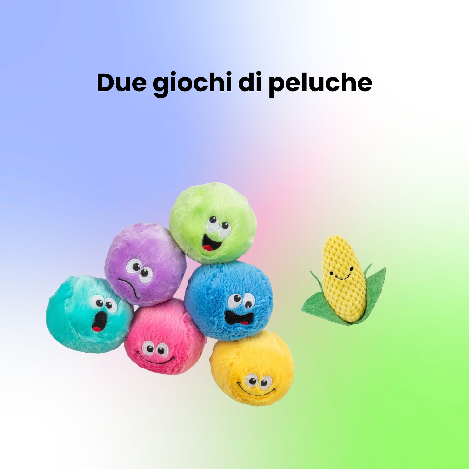 🐾 Due giochi di peluche – morbidissimi, colorati e super divertenti! Perfetti per i momenti di gioco in casa o all’aperto.